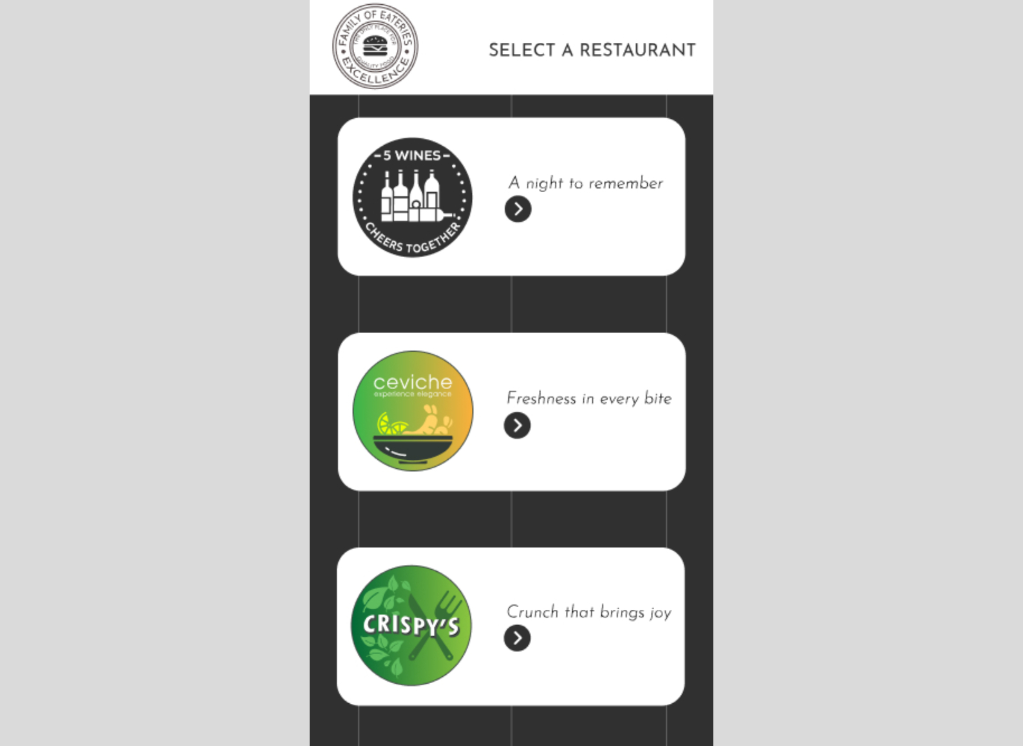 Creating a consistent design system across multiple restaurant brands while maintaining individuality and ensuring easy navigation on mobile screens.