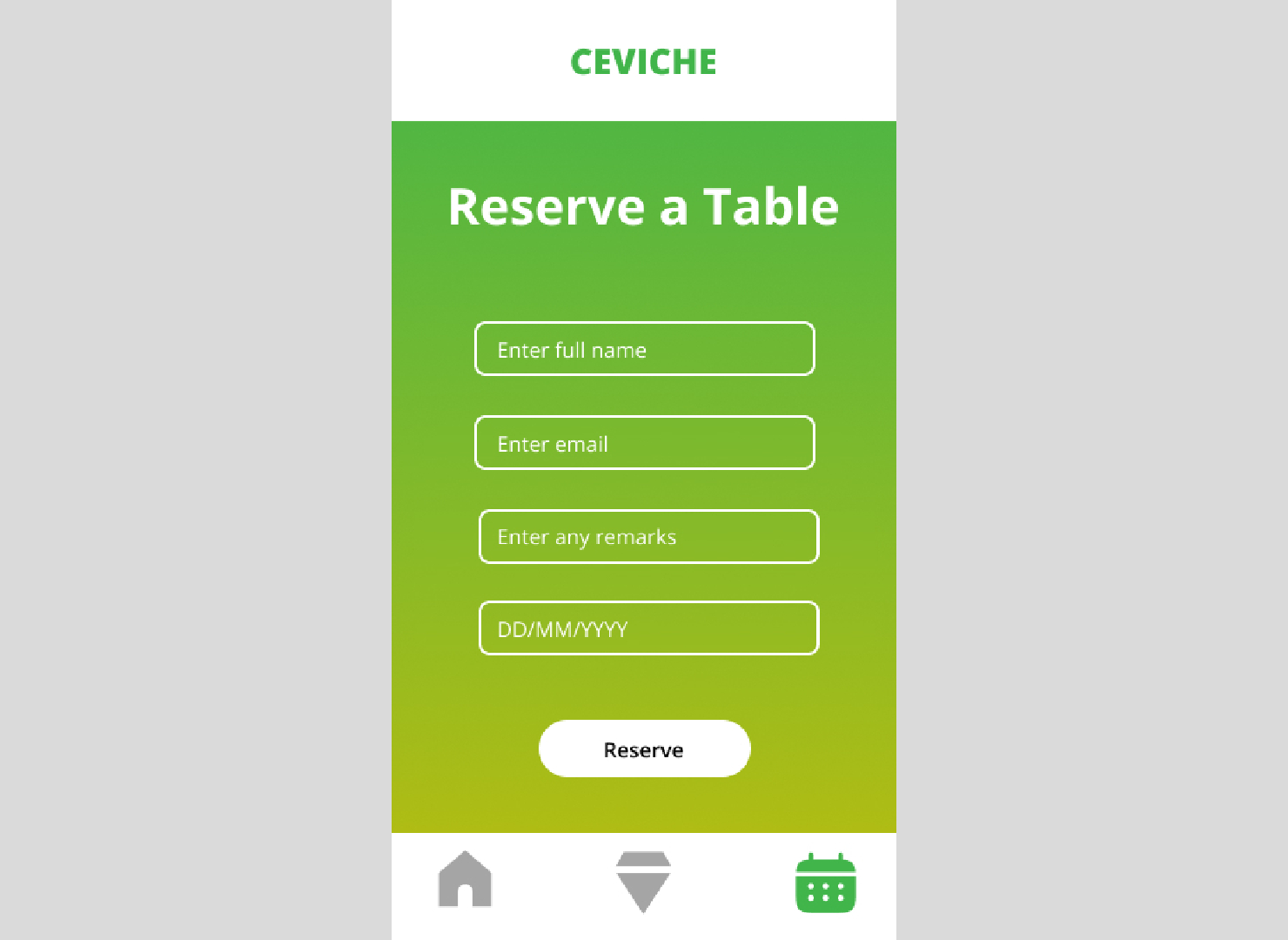 The objective was to design a smooth user journey from restaurant selection to booking, focusing on clarity, minimalism, and strong visual branding.